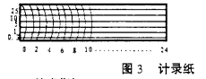 記錄紙其長度和寬度根據記錄設備要求,其橫坐標可以設計成以小時為單位,也可以設計成以天為單位,可以根據用戶要求設計成不同型式,其縱坐標也是根據流量公式Q=CHN計算得到,量程可自己選擇,其樣式可參見圖3。