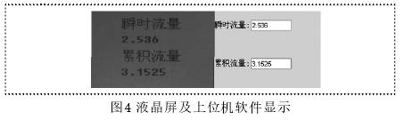 該程序主要用于實時更新流量信息,微處理器與上位機通過RS232接口以modbus協(xié)議進(jìn)行通信。*后,該設(shè)計液晶屏上所顯示的流量信息與上位機軟件所顯示的數(shù)據(jù)如圖4所示。