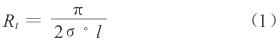 這里再次強調(diào),把被測量的液體導(dǎo)電介質(zhì)視為零電阻,然后作為差動流量信號的基準(zhǔn)點。理論上講,基準(zhǔn)點值越小越好,越小其電阻值越接近于零,差動信號幅值分的就越相等。這就是說,被測導(dǎo)電流體應(yīng)是在大面積的容器內(nèi),或者處在長管線的管道中。在文獻[1]中已作分析,流體的體電阻Rt可由電阻率公式求得: