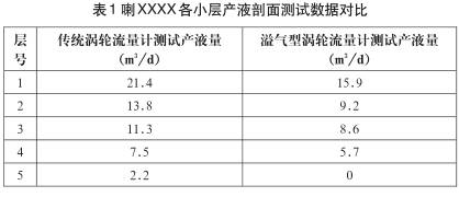 (2)層段的產(chǎn)液量未達(dá)到儀器啟動(dòng)排量時(shí)溢氣型渦輪燃?xì)饬髁坑?jì)仍舊無法測量,因此研制低啟動(dòng)排量的渦輪傳感器仍舊迫在眉睫。