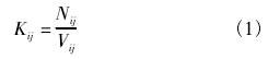 式中:Kij為*i檢定點*j次檢定的儀表系數,L-1或(m3)-1,其中,i=1,2,3,…,m,m為檢定點數,m≥3,j=1,2,3,…,n,n為檢定次數,n≥3;Nij為*i檢定點*j次檢定時流量計顯示儀表測得的脈沖數;Vij為*i檢定點*j次檢定時標準裝置測得的實際流量,L或m3。