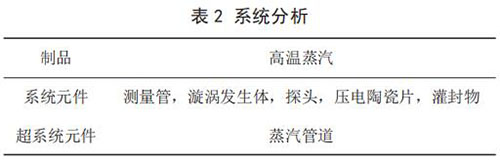 1)定義技術(shù)系統(tǒng)實現(xiàn)的功能。問題所在技術(shù)系統(tǒng)為二氧化硫流量計傳感器系統(tǒng);該技術(shù)系統(tǒng)的功能為轉(zhuǎn)換信號;實現(xiàn)該功能的約束:測量精度為 ±1%,成本提高控制在 20% 之內(nèi)。