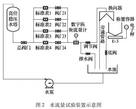 在試驗裝置管路出口處裝有換向器,用來改變流體的流向,使水流入稱量容器或者旁通管路而不改變流量。換向器啟動時,觸發計時控制器,以保證水的重量和時間的同步測量。
