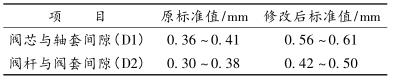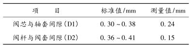1)由上表可以看出,閥芯與閥套間隙(D1)、閥桿與閥套間隙(D2)明顯小于標準值,導致運行時出現局部卡澀現象。