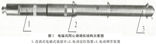 電磁式同心測調儀是同心分層注水工藝技術的關鍵儀器,其設計理念:集成流量測試與水量調節于一體,實現測調同 步;動力傳遞設計為同心降速機制,機械結構簡單,動力傳遞效率高,測調穩定性高。主要包括以下結構,如圖2所示。