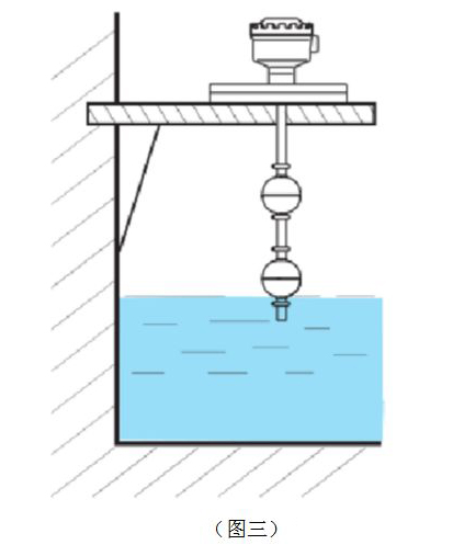 3)開(kāi)關(guān)裝置于混凝土池壁,可加裝L型角鋼支架(見(jiàn)圖三)。